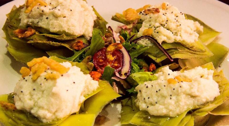 Corazones de alcachofa rellenos de brandada de bacalao